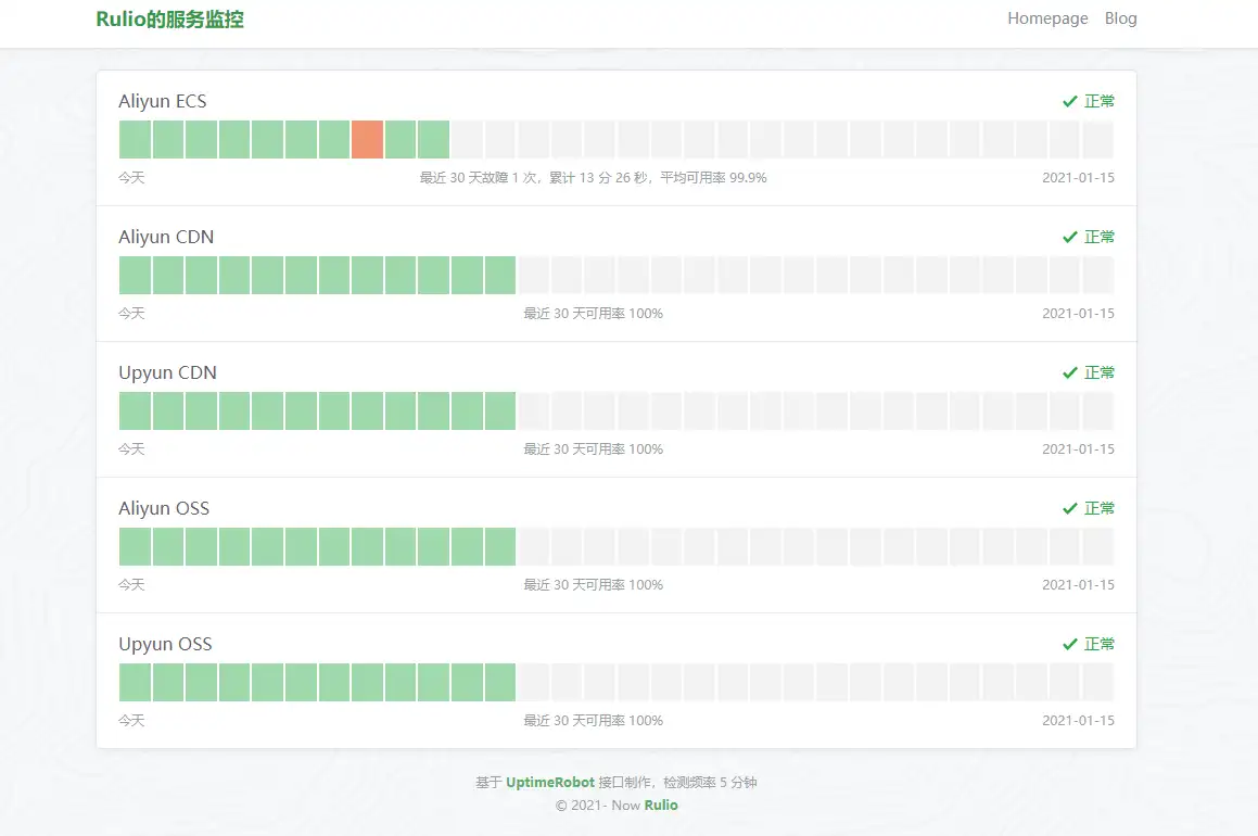 uptime-status 是一个基于UptimeRobot的网站在线监控程序,可以监控自己网站的在线状态,在静态页面上直观的显示出来!