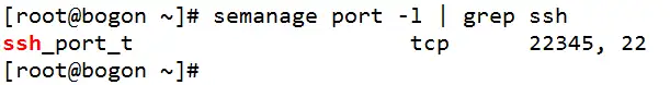 semanage port -a -t ssh_port_t -p tcp 22345重启 ssh 服务: